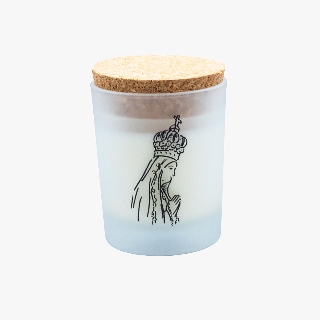 Copo com vela da linha oficial do Santuário, com tampa em cortiça.