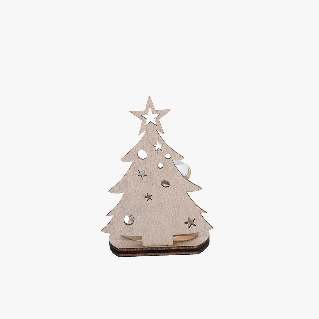 Enfeite em forma de Presépio, com base e árvore em madeira e presépio em marfinite.