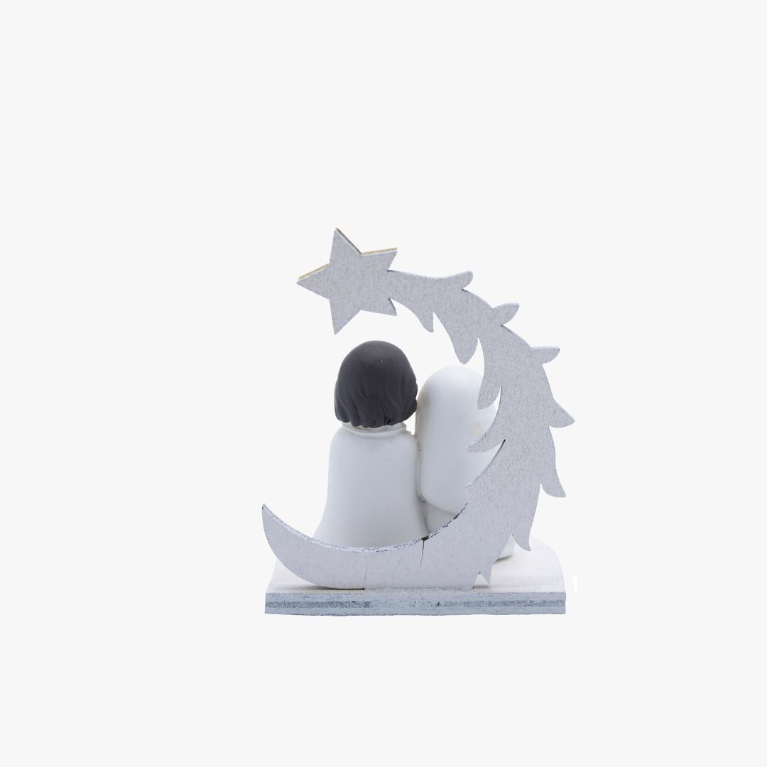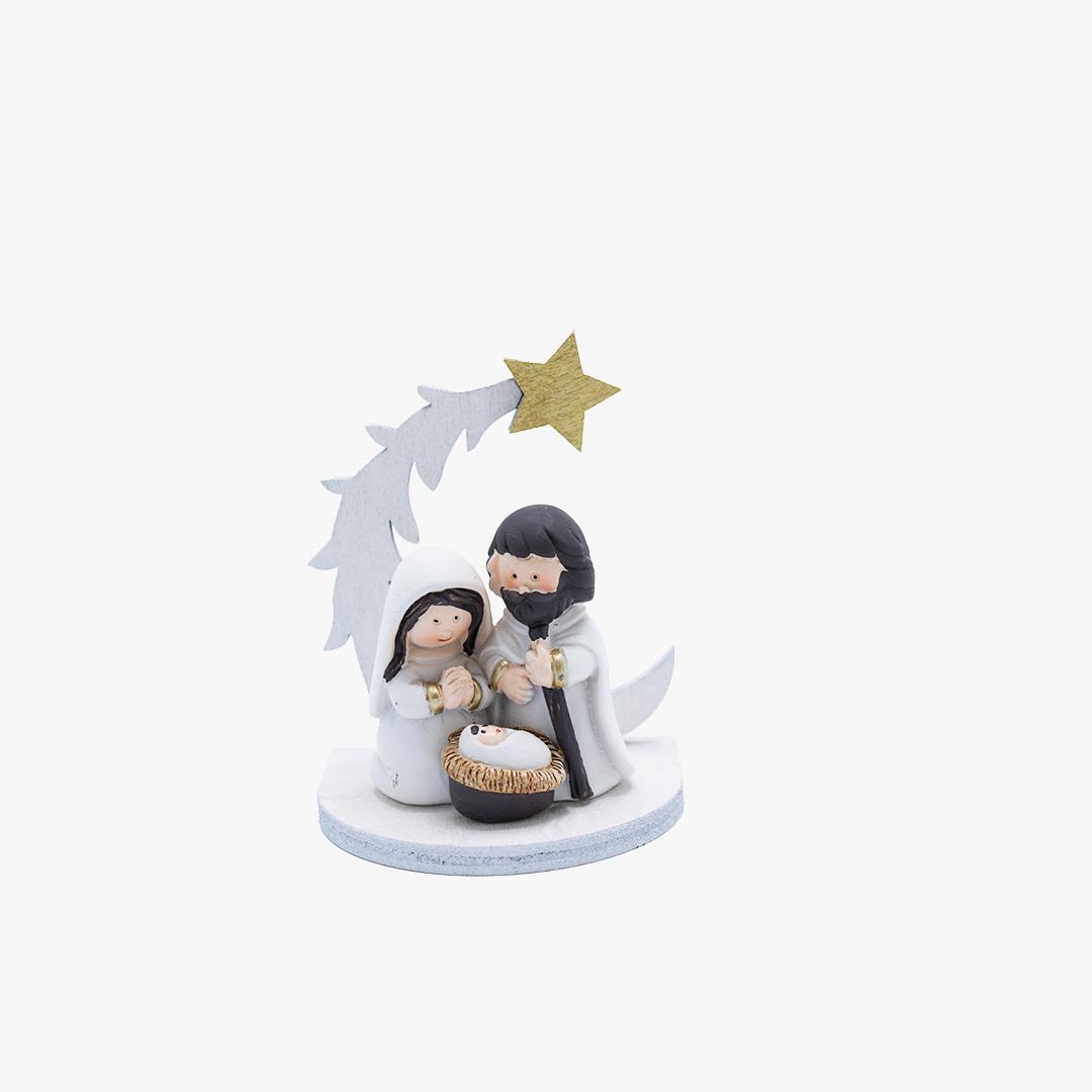 Enfeite em forma de Presépio, com base e árvore em madeira e presépio em marfinite.