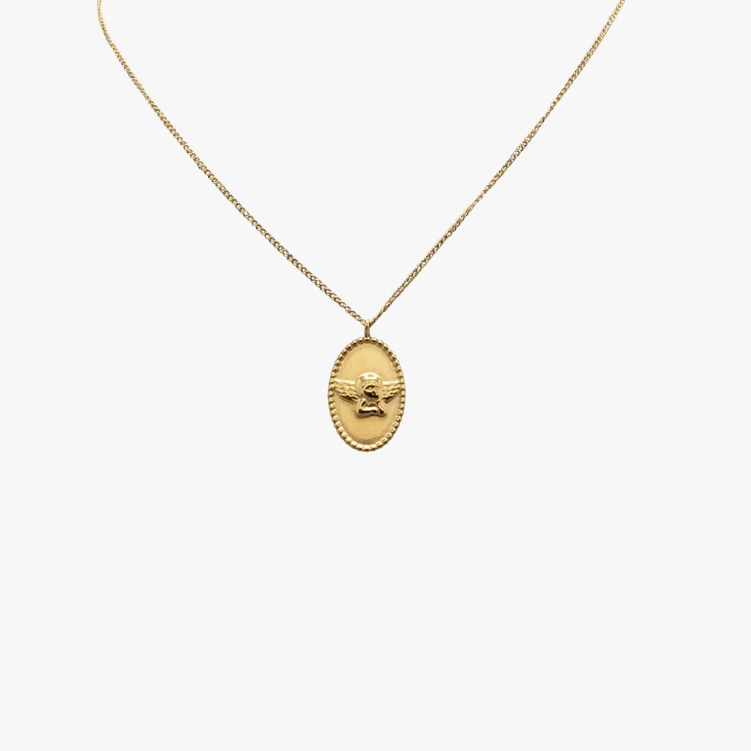 Fio em aço com medalha representativa do Anjo da guarda, em relevo.